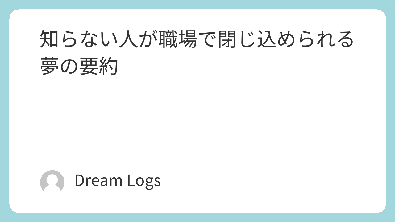知らない人が職場で閉じ込められる夢は、仕事や人間関係に関する心理的な圧迫感や不安が無意識に表れている状態を示しています。職場という日常的な環境で、正体の分からない人物が閉じ込められる場面は、責任や立場、業務上の制約に対する緊張や心配が夢に反映されているサインです。この夢は現実の危険を意味するものではなく、心が「注意や心理的ケアが必要」と知らせている心理的サインと考えられます。