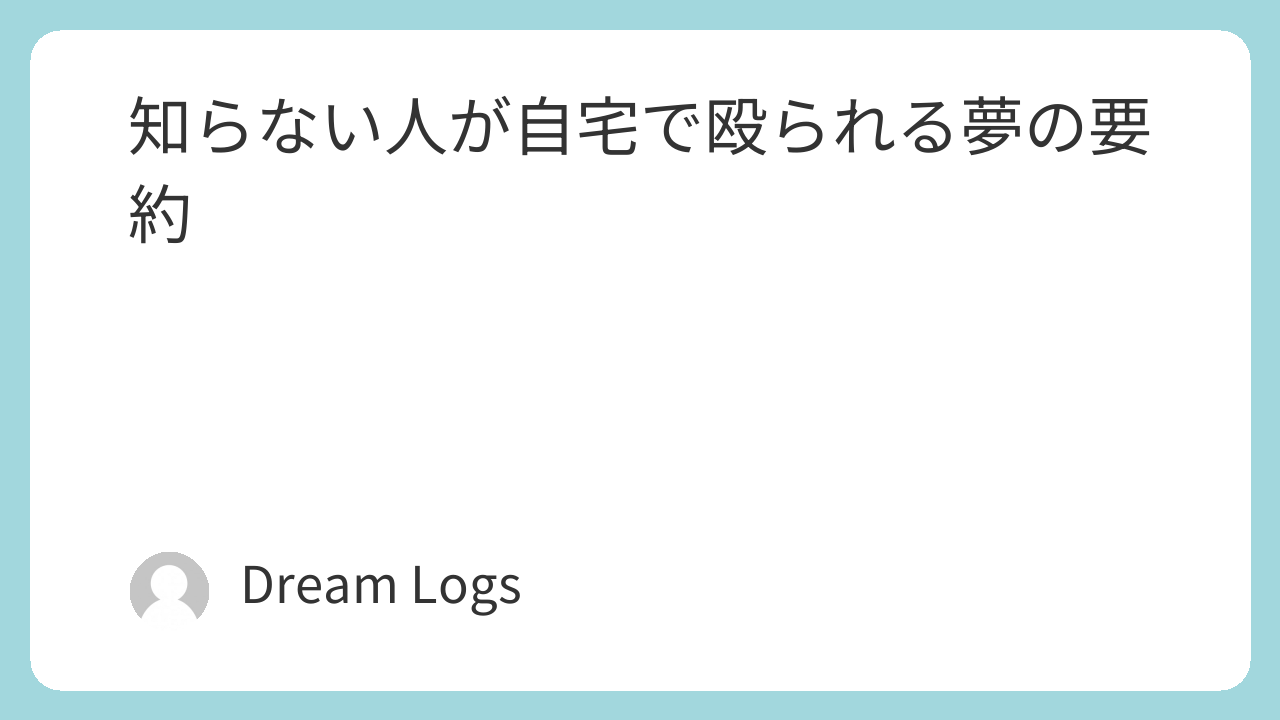 知らない人が自宅で殴られる夢は、強い恐怖や嫌な印象を残しやすい夢ですが、現実の暴力や不幸を直接示すものではありません。自宅という安心や本音を象徴する場所で、見知らぬ人物が攻撃される場面は、あなた自身の中にある強いストレスや抑圧された感情、衝突への恐れが投影されたものと考えられます。自分ではなく他人が殴られる点に、心を守ろうとする無意識の働きが表れています。