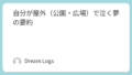 怒られる夢は、夢占いでは自己評価の低下や、注意・警告を象徴します。屋外(公園・広場)は人目や社会性を表す場所であるため、この夢は他人からの評価や視線を強く意識している状態を示しやすいです。実際に怒られる出来事を暗示するというよりも、自分自身が「失敗してはいけない」「期待に応えなければならない」と感じている心理が反映されていると考えられます。