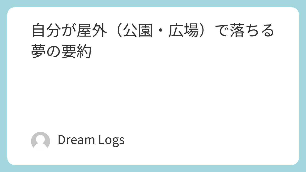 屋外(公園・広場)は夢占いでは、自由、安心、人とのつながり、社会的な居場所を象徴します。そこで落ちる夢は、精神的な安定が揺らいでいることを意味します。信頼していた環境や人間関係、自分の立場に対して不安を感じ始めている可能性があり、「このままで大丈夫だろうか」という気持ちが反映されています。