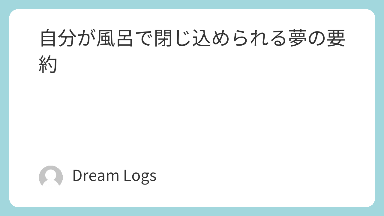 自分が風呂で閉じ込められる夢は、心が安心と解放を求めているサインです。一人で抱え込まず、信頼できる人に話したり、環境を少し変えることが大切です。小さな選択を重ねることで、不安は徐々に軽くなっていくでしょう。